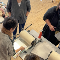 På første dag arbejder vi udelukkende med collografi/paptryk. Medbring gerne blank mælkekarton eller juice emballage. På anden dag laver vi baggrunde med fotooverførsler. Medbring gerne forskellige mønstre og lign.